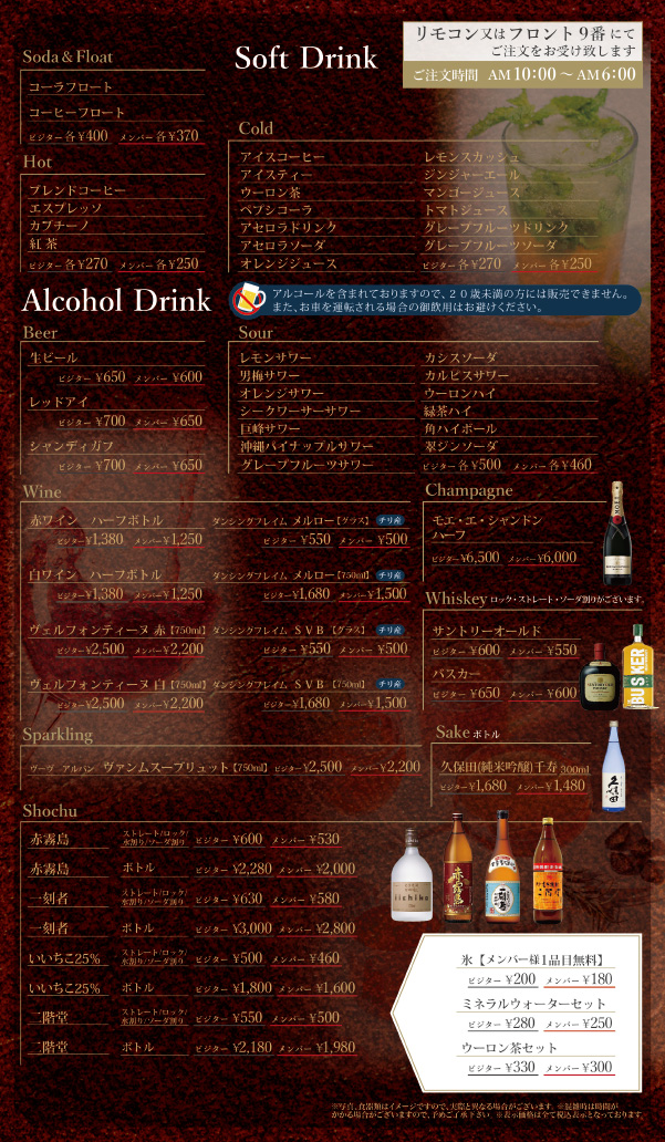 ご来店のお客様全員にウェルカムサービスとしてドリンクorスイーツを、お一人様1品無料でサービス致します。